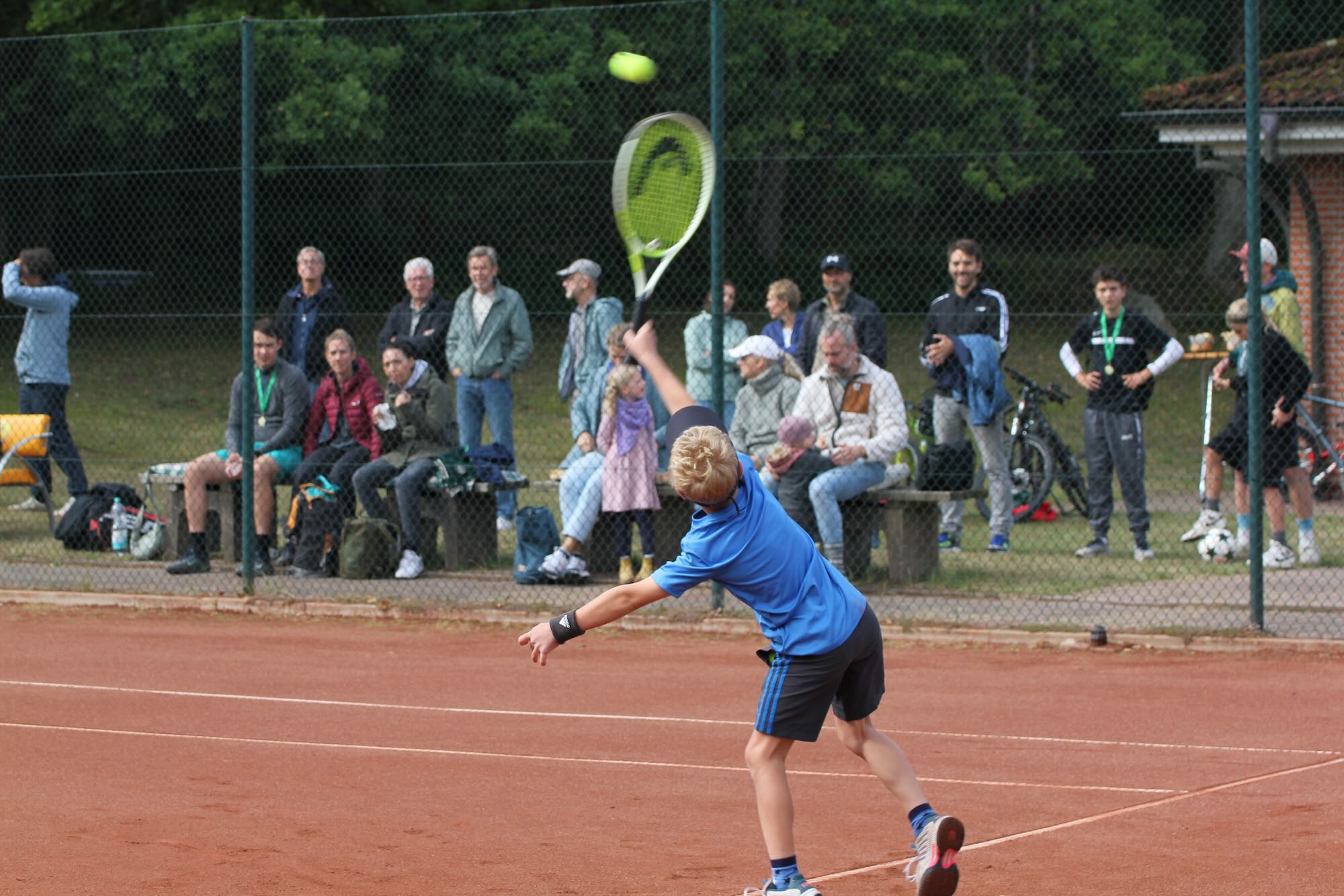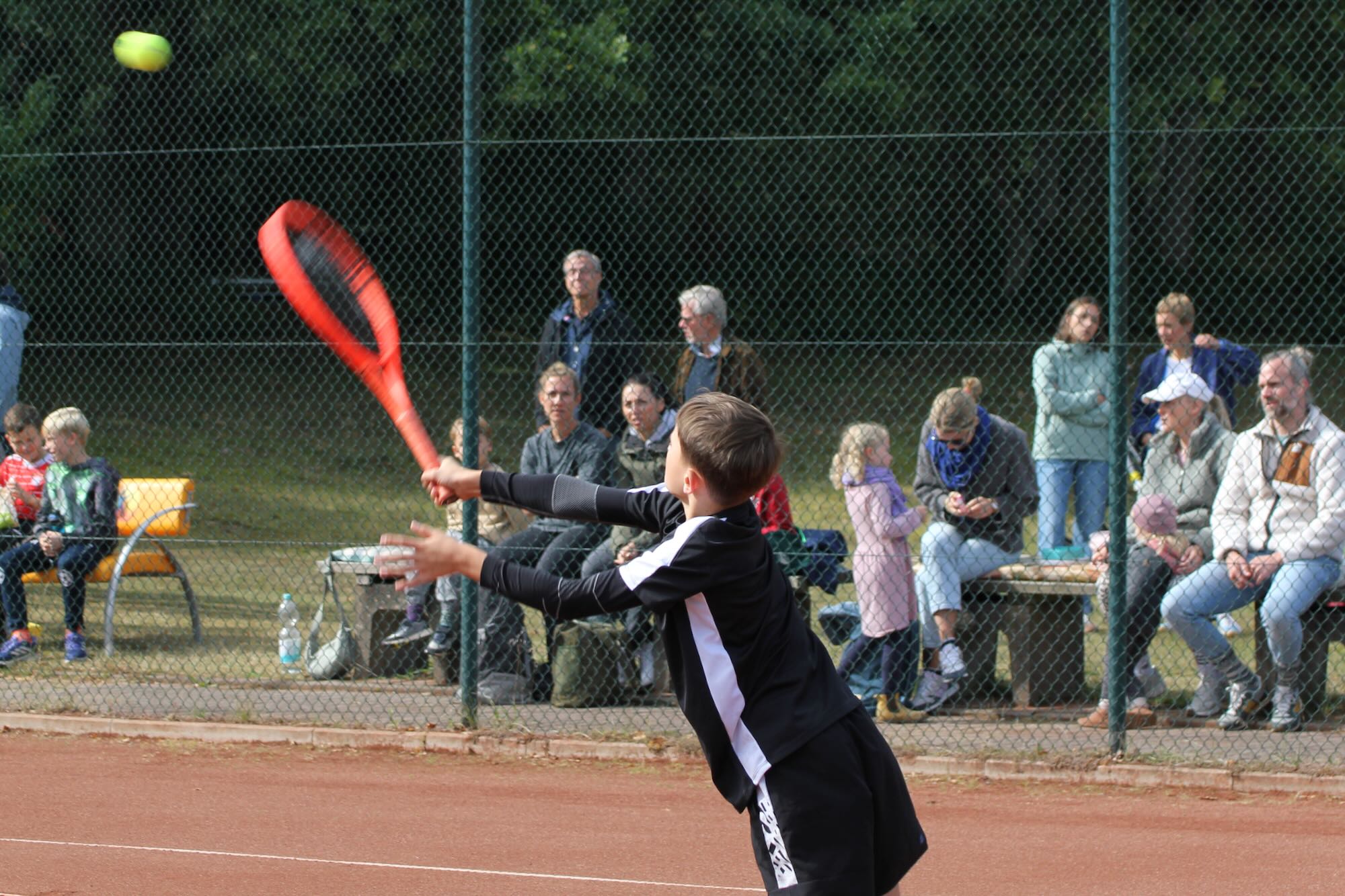 Ein besonderer Höhepunkt war das Finale der U10 Großfeld: Vor rund einhundert Zuschauerinnen und Zuschauern lieferten sich Frederik und Marten ein packendes Duell, das über zwei Stunden dauerte. Mit langen, hochklassigen Ballwechseln, großem kämpferischen Einsatz und beeindruckender Technik zog das Spiel nicht nur das Publikum auf der Tennisanlage in seinen Bann – sogar Zuschauer eines benachbarten Fußballspiels wurden aufmerksam und verfolgten das mitreißende Match, das erst im Match-Tiebreak entschieden wurde.